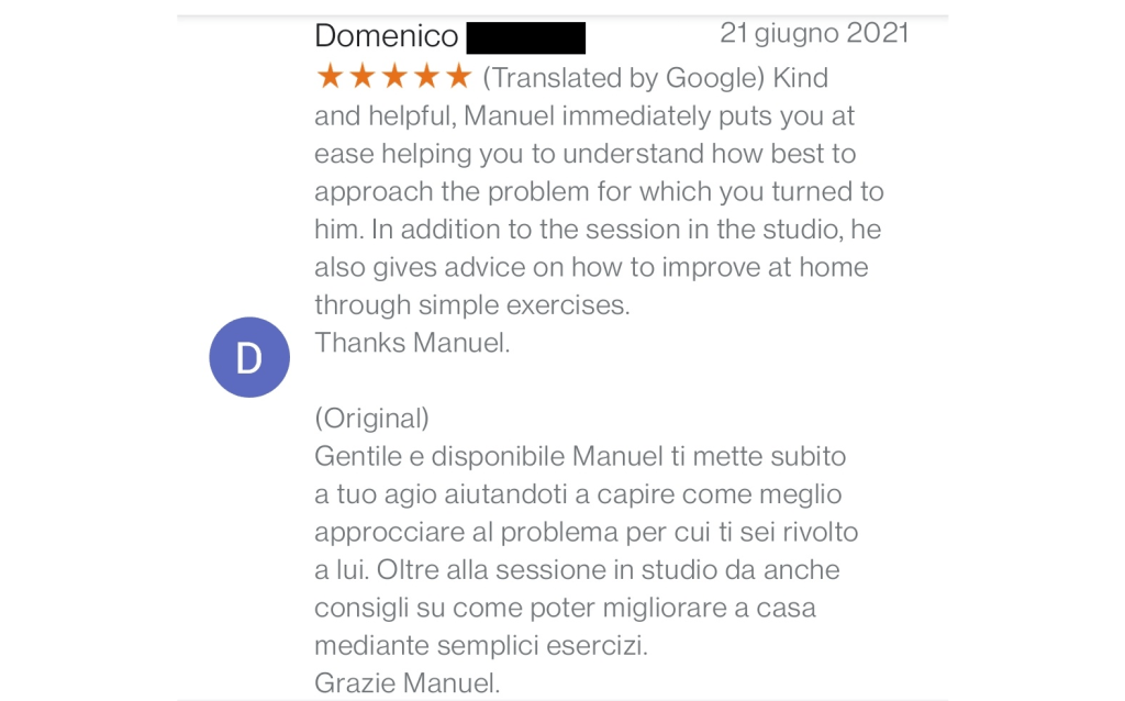 Domenico è venuto in studio per risolvere alcuni sintomi associati al reflusso gastro-esofageo. Nel percorso assieme abbiamo affrontato anche un episodio di dolore lombare acuto.